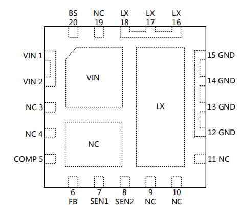 SP1229HN 是(shì)一(yī)款同步降壓轉換器(qì),該轉換器(qì)可(kě)驅動輸出 4.8A 負載電(diàn)流。設計(jì)允許 SP1229HN 在 9V到(dào) 40V 寬輸入電(diàn)壓範圍內(nèi)工(gōng)作(zuò)。通(t≥ōng)過将 COMP/EN 引腳邏輯電(diàn)平拉低(dī)來(lái)實現(xiàn)外(wài)部關斷功≤能(néng),并進入待機(jī)模式。外(wài)部補償使反饋控制(zhì)環路(lù)具有(yǒu)良好(hǎo)的≤(de)線壓調整率和(hé)負載調整率,且外(wài)圍設計(jì)靈活。SP1229HN 可(kě)以工(gōng)作(zuò)在 CC(恒流輸出)或 CV(恒壓輸出)兩種模式,'過流保護(OCP)電(diàn)流值可(kě)以通(tōng)過外(wài)部電(diàn)流檢測電(diàn)阻精确設置。SP1229HN 适↓用(yòng)于有(yǒu)限流要(yào)求的(de) DC/DC 開(kāi)關電(diàn)源€,芯片采用(yòng) QFN20L-5×5 封裝,僅需較少(shǎo)的(de)外(wài)部器(qì)件(jiàn)。