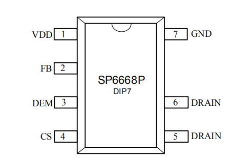 SP6668P is a high performance multi-mode (QR/CCM)PWM controller for flyback converter.₹ The chip consumes very low start-up and operation £current. It achieves less than 75mW standby power to meet strict standby power standa≈rd. SP6668P offers comprehensive protection coverage with auto-εrecovery feature including Cycle-by-Cycle current limiting, Diode Short Protection, O₩utput over voltage protection, VDD over voltage protection (OVP), feedback loop open pro≥tection, load short circuit protection,VDD under voltage lockout αwith hysteresis (UVLO), Brown-out and Line-ovp function. SP6668P is offered in DIPσ7 packages.